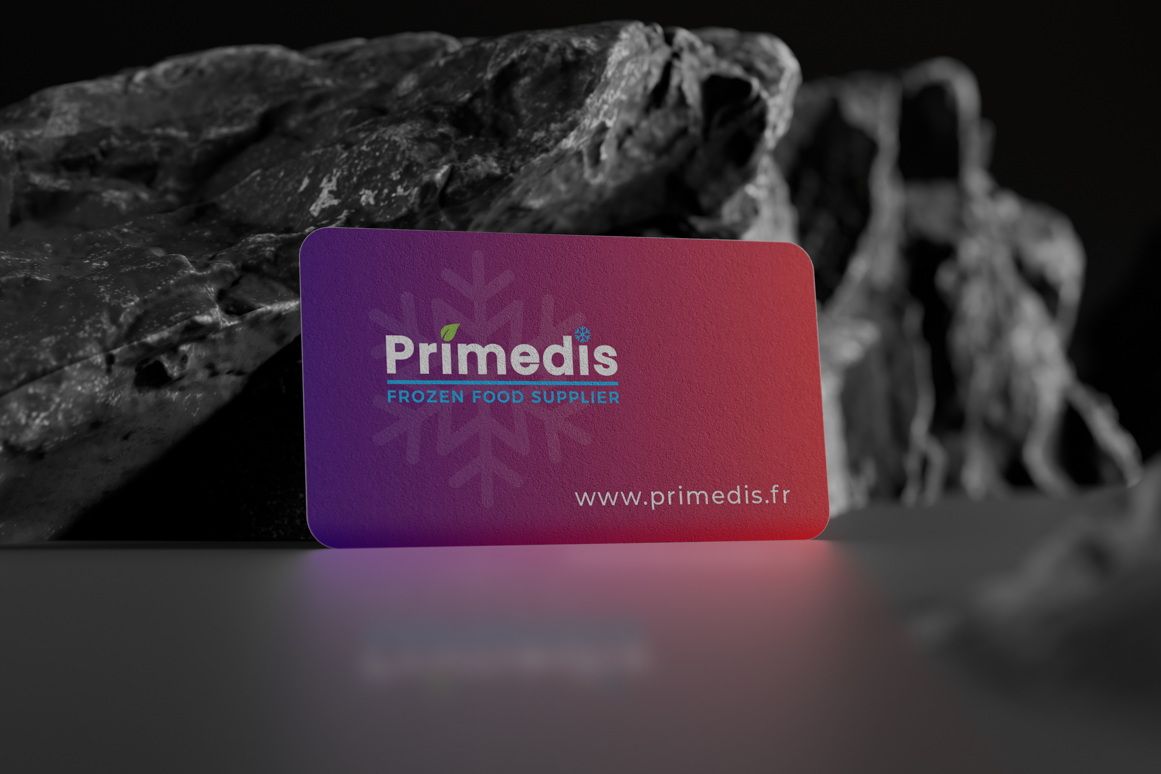 Pour l’entreprise PRIMEDIS, spécialisée dans l’import-export de produits surgelés, j’ai eu en charge la direction artistique et la création de la carte de visite.